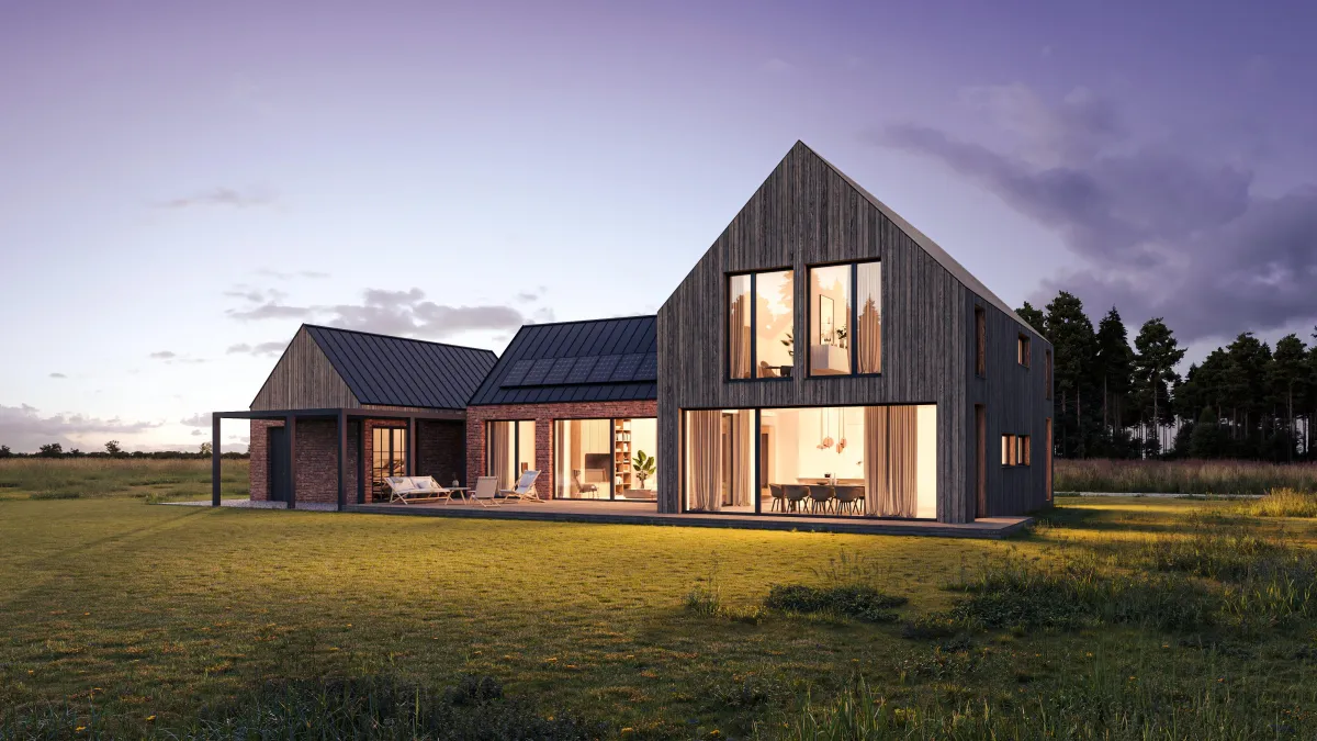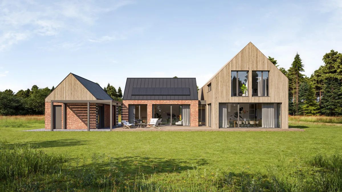 Zależało mi, żeby projekt był nie tylko poprawny energetycznie, ale też „mój” – zakorzeniony w lokalnym kontekście. Inspirowałam się układem dawnych zagród z wewnętrznym dziedzińcem.
